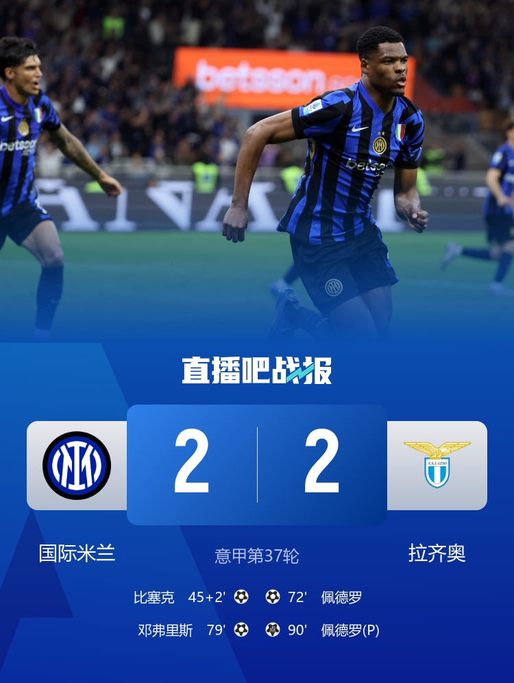第79分钟,邓弗里斯头球破门。马雷利接着说:“拉齐奥对这个进球提出了一些抗议,但双方球员都比较克制。在当时的情况下,VAR不会介入,因为这是球场上裁判做出的判断。”
