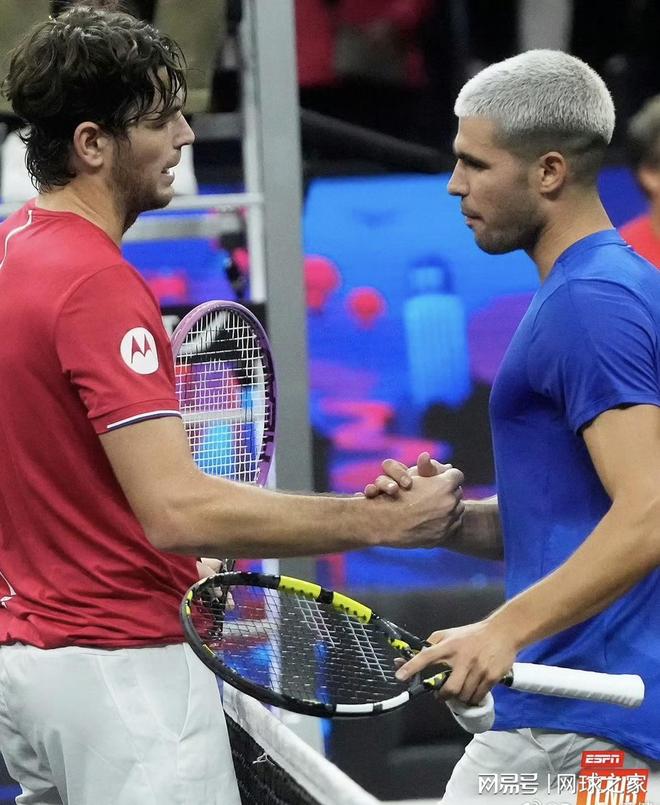 而对阿尔卡拉斯来说,这是自2025年美国网球公开赛夺冠后的首场失利,13连胜纪录也就此终结。尽管作为欧洲队的核心球员,他此役的表现显然未能达到预期,整场比赛显得反应迟缓、击球选择急躁,未能有效应对弗里茨持续施加的压力。
