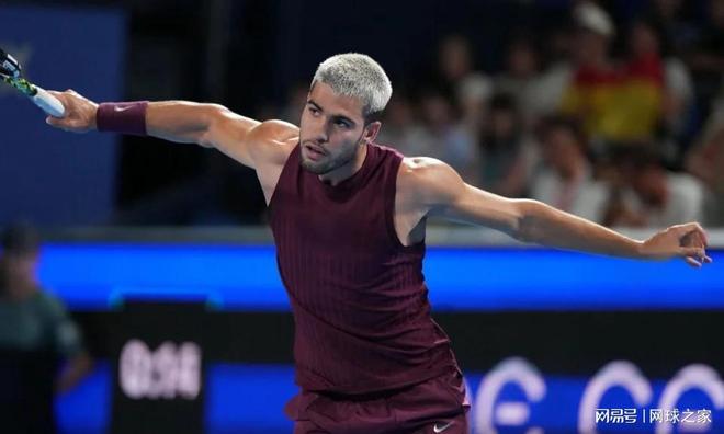 不过,轻伤不下火线的阿尔卡拉斯在这场比赛中还是暴露出了不少问题。因为带伤作战,阿尔卡拉斯担心加重伤势,甚至可能引起二次受伤,所以在跑动上有所保留,不像以往比赛那样每球必追、每分必争。而且,阿尔卡拉斯为了节省体能、减少风险,所以打得非常具有侵略性,就算进攻时机不佳,阿尔卡拉斯仍然勉力为之,强力发动进攻,只为缩短比赛回合,不做过多纠缠。结果阿尔卡拉斯收获了很多制胜分,但也交出了为数不少的非受迫性失误,以致全场比赛自己的三个发球局失守,竟然和2025年美网七轮比赛仅仅丢掉三个发球局持平。