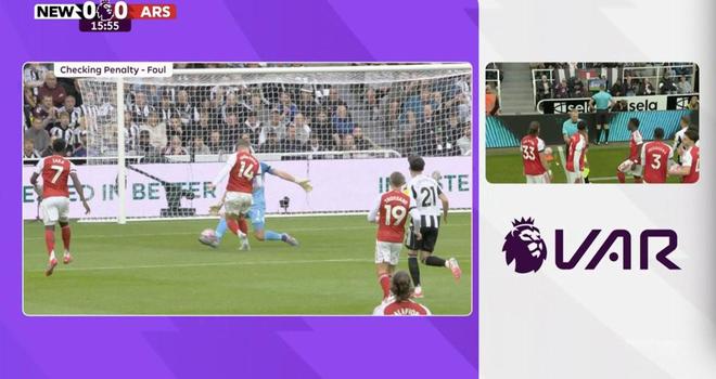 主裁判宣布:“经过回看,纽卡斯尔门将先踢到球,没有犯规。最终判罚是坠球。”