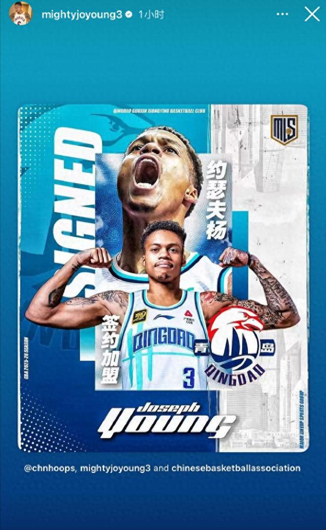 约瑟夫-杨重返CBA,加盟青岛男篮约瑟夫-杨在个人社交媒体官宣,加盟青岛男篮!