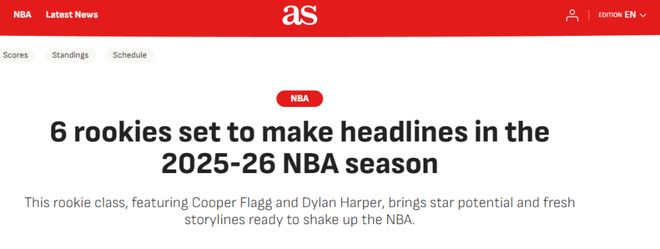北京时间10月17日,外媒《阿斯报》评出新赛季值得关注的6大新秀,中国球员杨瀚森名列其中。以下他们对这6位新秀的简评和展望——库珀-弗拉格(18岁,状元秀,独行侠)