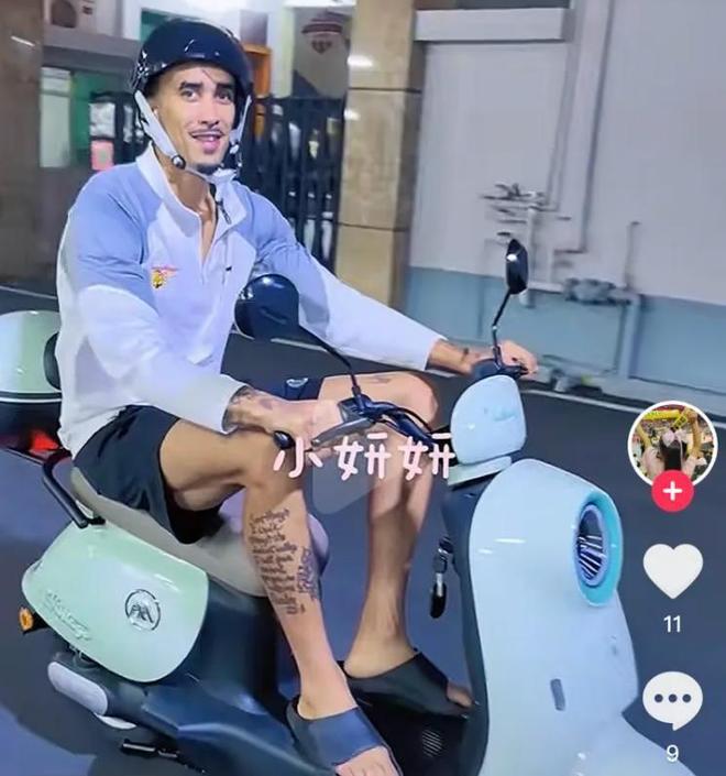 有球迷上传视频,画面中是广东队新外援奎因,此刻他正骑着电动车,还戴着头盔。奎因骑电动车的视频引起大量广东球迷留言互动,“这才是正式加盟啊”,“广东队球员标配电动车”,“完成了入队仪式”,大家都是点赞和调侃。