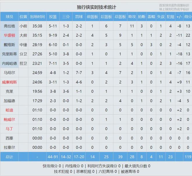 东契奇半场8中5轰下18分2板4助,里夫斯8中6砍下19分5板1助,詹姆斯4中1得到2分3板6助。浓眉5中3,得到6分3板3助1帽。第三节湖人下起三分雨,单节三分14中8,再次取得领先。东契奇第三节独得12分,詹姆斯单节7分进账。独行侠非常顽强,三节打完,94-98落后4分。艾顿前三节6中6,弹无虚发。第四节决战,湖人坚持放空内姆哈德,他连中两记三分,独行侠再次反超。里夫斯站出来连砍10分,帮助湖人顶住独行侠反扑。最后6分钟,湖人领先7分。
