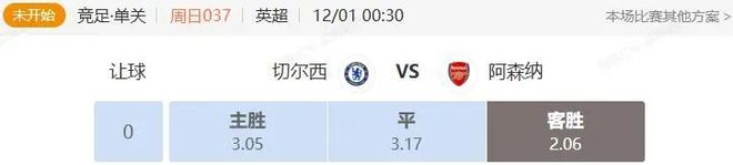 竞足 周日037 英超 切尔西VS阿森纳