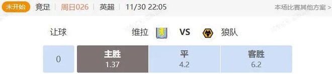 竞足 周日026 英超 维拉VS狼队
