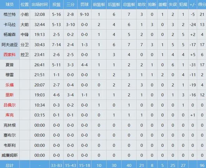 开拓者客场96-119不敌灰熊的比赛,杨瀚森迎来NBA正赛生涯第一次首发,总共出战约19分钟,投篮5中2(三分2中0),得到4分5板2助2失误5犯规,是全队唯二正负值为正数的球员,另外一位是西索科(6分4板,正负值+5)。