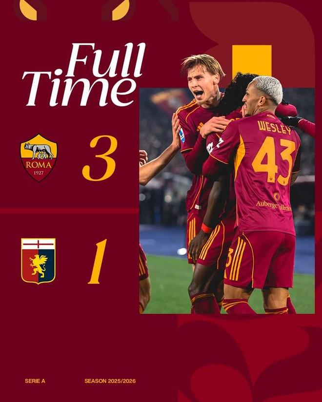 北京时间12月30日,在意甲第17轮的比赛中,罗马依靠马蒂亚斯-苏莱、夸迪奥-科内以及埃文-弗格森的进球主场3-1击败热那亚,排名重回积分榜第四位。
