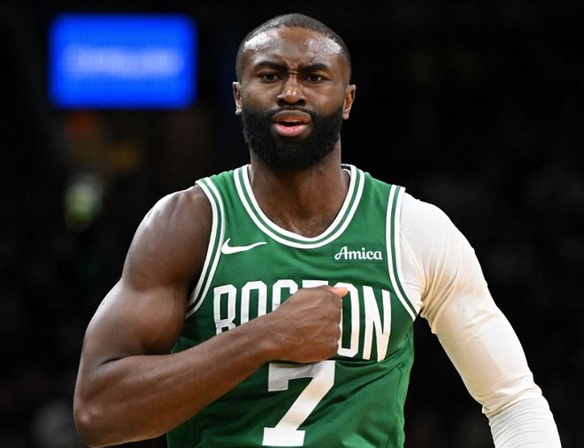 赛季至今,布朗出战32场,场均出战33.8分钟,场均轰下30.1分(联盟第4)+6.3篮板+5助攻+1.1抢断+2.1记三分球,三项命中率分别为51%,37%和77.9%,真实命中率为60.2%。其中,打活塞,布朗狂轰41分6板4助;打森林狼,布朗爆砍41分6板7助;打尼克斯,布朗攻下42分4板4助;打快船,布朗豪取50分3板5助。布朗在进攻端又稳又狠,场均投篮命中率高达11.1次,排在联盟第1位,堪比新一代跳投大师。同时,布朗在防守端也格外抢眼,限制对手投篮命中率为39.37%,排在联盟第2位,仅次于华莱士(38.06%),作为对比,文班亚马限制对手命中率仅为39.4%。